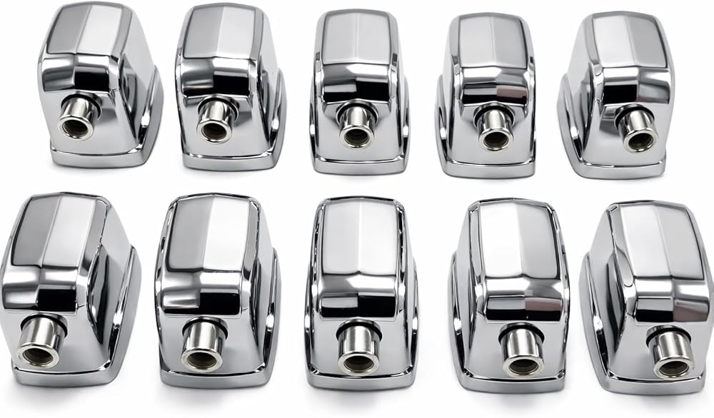 AIAS Single-End Drum Lugs for Snare and Tom Drums, Chrome Rectangular Cube Style Replacement Hardware with Screws and Rubber Gaskets, 1-Inch Hole Spacing, 10 Pack