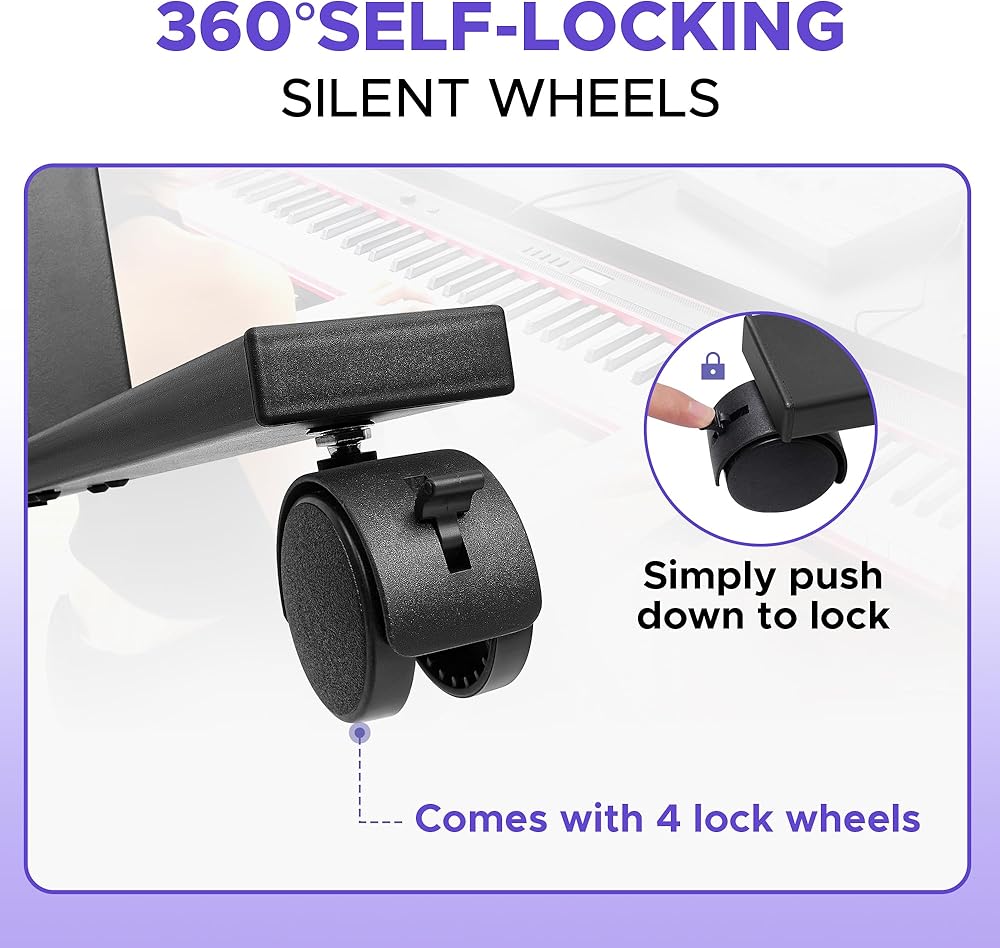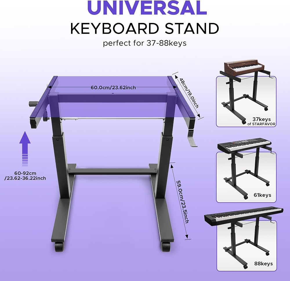 حامل لوحة مفاتيح البيانو Starfavor - حامل لوحة مفاتيح بارتفاع قابل للتعديل مع عجلات، حامل موسيقى عالي التحمل يناسب 61-88 مفتاح بيانو رقمي كهربائي - (SPS-400)
