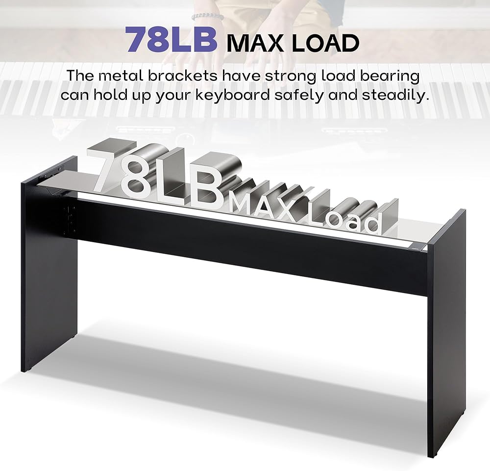 [مثل البيانو الحقيقي] مصنوع من خشب ثقيل عالي الجودة ودقة عالية في التصنيع، مع لمسة نهائية ناعمة جميلة من لوح خشبي مقاس 18 مم. يبدو وكأنه بيانو حقيقي مع حامل لوحة المفاتيح الخاص بنا.
