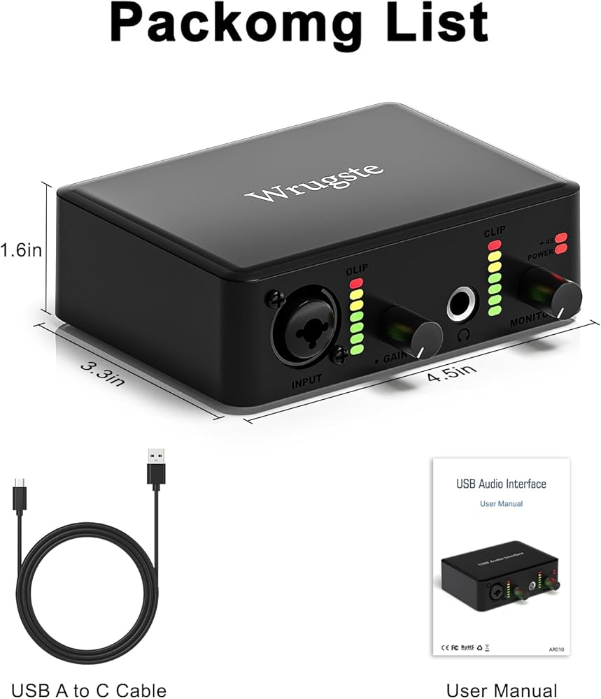 【سهلة الاستخدام】تعتبر واجهة الصوت Wrugste USB منتجًا موثوقًا وعالي الجودة، ومثالية للموسيقيين ومقدمي البث الذين يحتاجون إلى طريقة بسيطة وفعالة لتسجيل الموسيقى أو المدونات الصوتية. إنه سهل الاستخدام، ومتوافق مع برامج التسجيل الشائعة، كما أن جودة البناء القوية تجعله استثمارًا رائعًا لأي شخص يتطلع إلى تحسين إعداد التسجيل الخاص به.