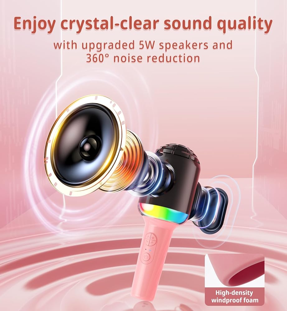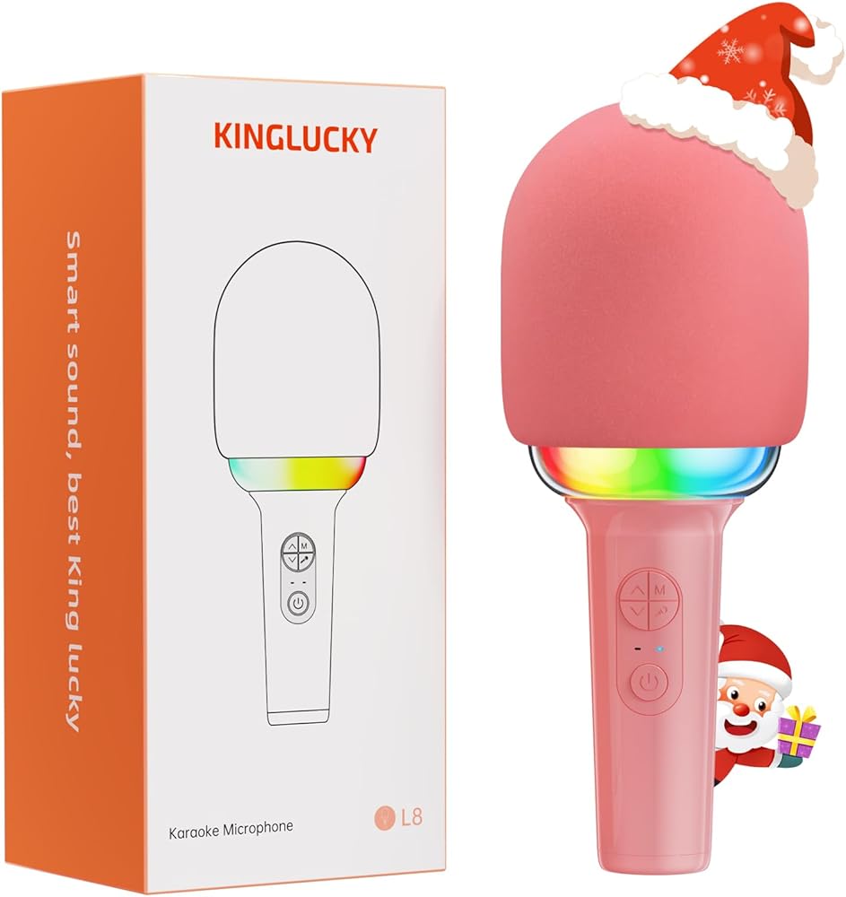 Kinglucky Wireless Bluetooth Karaoke Microphone, 2-in-1 Portable Handheld Karaoke Mic Speaker Machine Christmas Birthday Gifts Toys for Girls Ages 3-12+ Home Party for All Smartphones PC - Pink