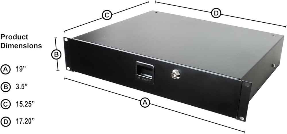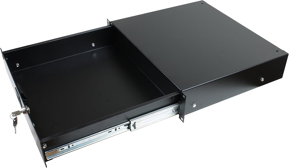 Penn Elcom 3232LK Standard Sliding Steel Rack Drawer for 2 Rack Spaces (2U) with Slam Latch & Key Lock, 14 Inch Deep Gear Storage
