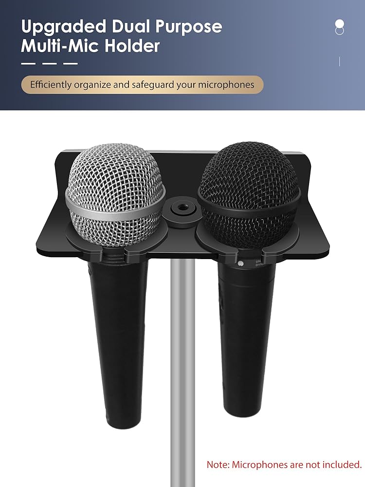 【Convenient and Efficient】With this multi-microphone holder, you only need one microphone stand to keep your microphones organized and ready to use. Eliminate the hassle of having your microphones scattered all over the place when not in use, and never have to look for a missing microphone again.