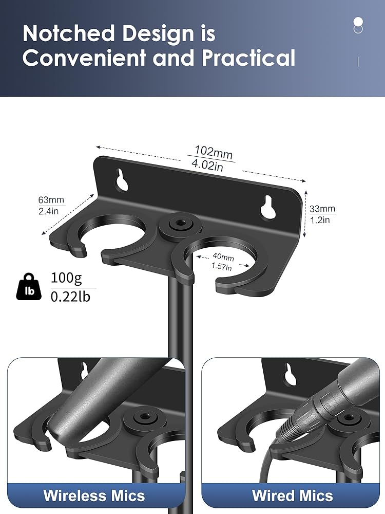 【Sturdy and Durable】This multiple mic organizer crafted from high-strength metal materials, our holder guarantees durability and long-lasting performance. The black surface of the holder is treated with a special process to prevent debris and scratches.