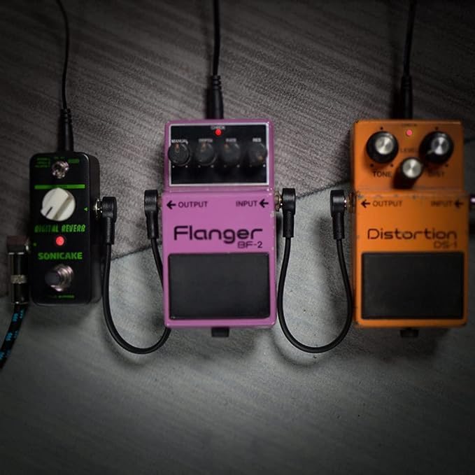 【Space-Saving】: 1/4" TS right-angle effect pedal flat guitar patch cables allow for tight placement of pedals on the board, maximizing every inch of pedal space