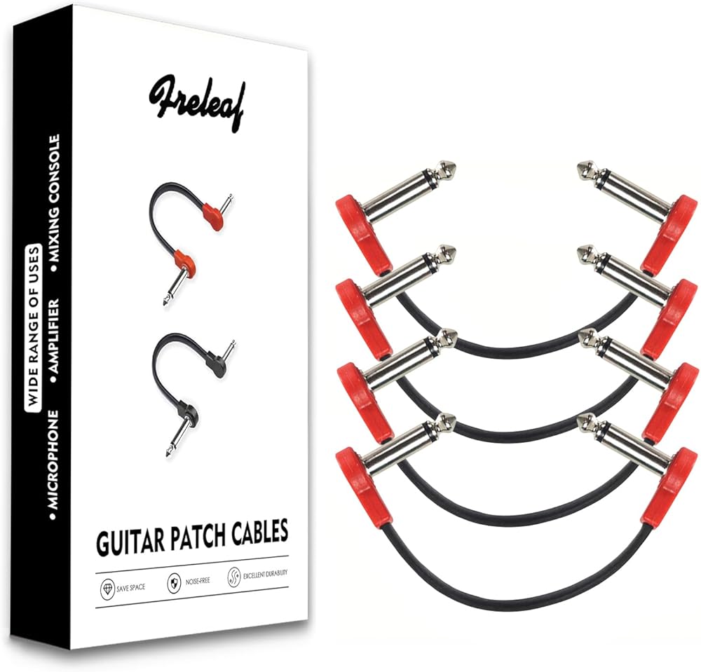 Freleaf Professional Flat Guitar Patch Cables, Noise Free, Save Space, 1/4" TS Right Angle for Guitar Effect Pedals, 6IN 2 Pack, Red