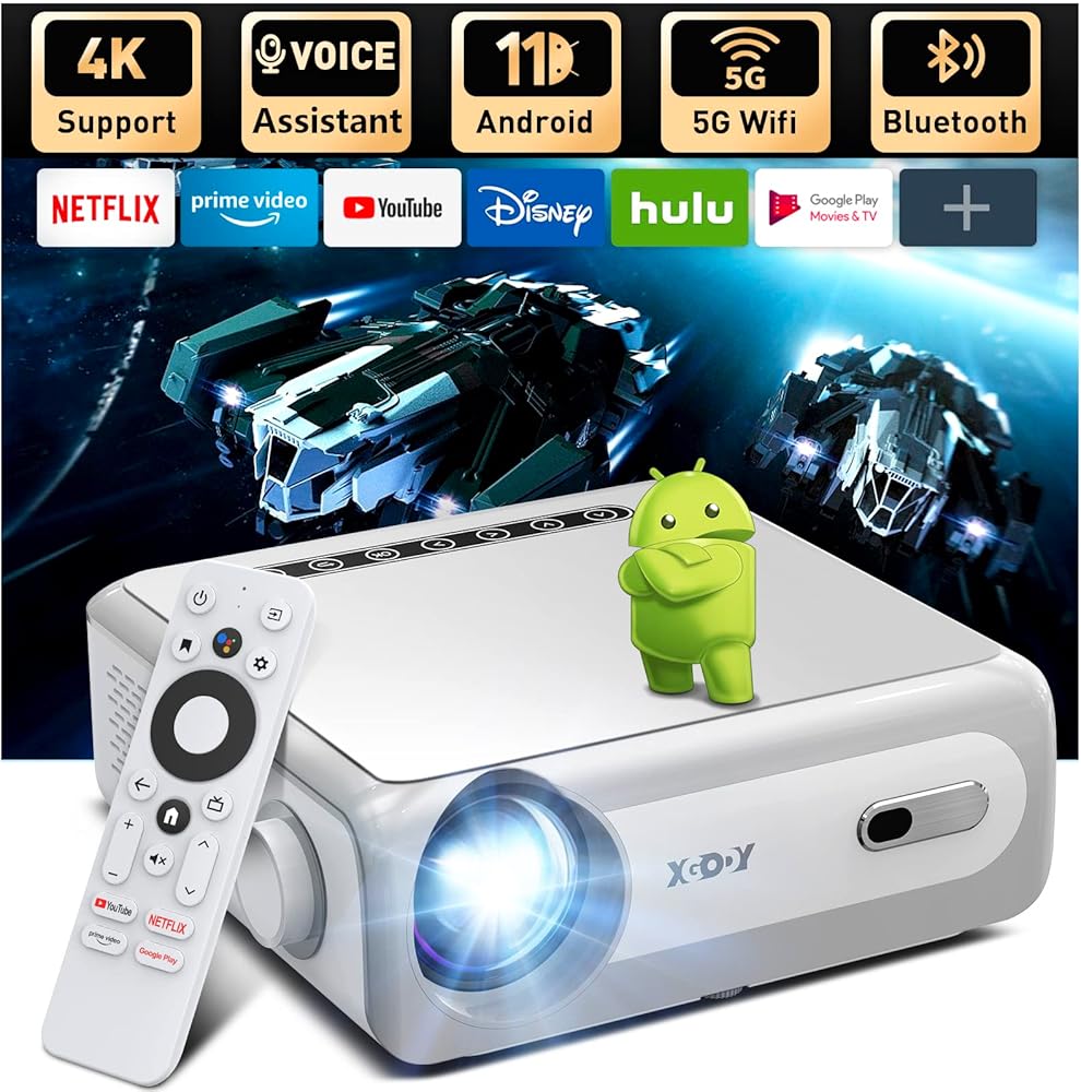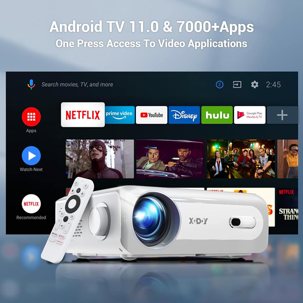 【Android TV 11.0 OS & Real Smart projector】The XGODY Sail1 projector has a built-in Android TV 11.0 operating system, and is compatible with Netflix, Prime Video and other advanced applications. Download your favorite apps like YouTube, Hulu, Spotify from google play store. XGODY Sail1 is a perfect built-in KD5 TV Stick all-in-one machine, only one remote control is needed to complete all operations, no additional TV stick is required.