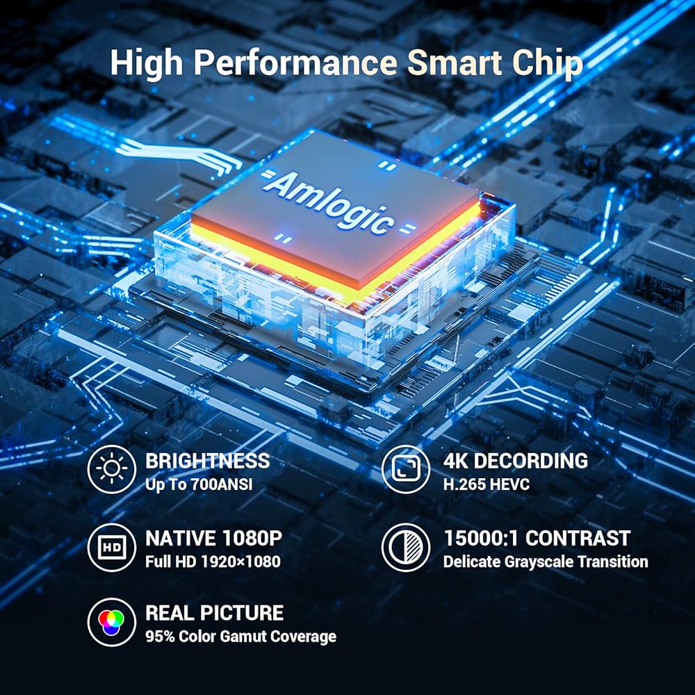 【Fully Enclosed Optical Engine and Cooling System Upgrade】 The dust-proof projector adopts a fully sealed optical engine, and dust will never enter the back of the lens, which can fully protect optical components such as chips and LCD screens. Extend the service life of the projector. The upgraded noise reduction technology controls the fan noise below 35 dB, ensuring high-performance projector operation while bringing you an immersive experience for a quiet movie night.