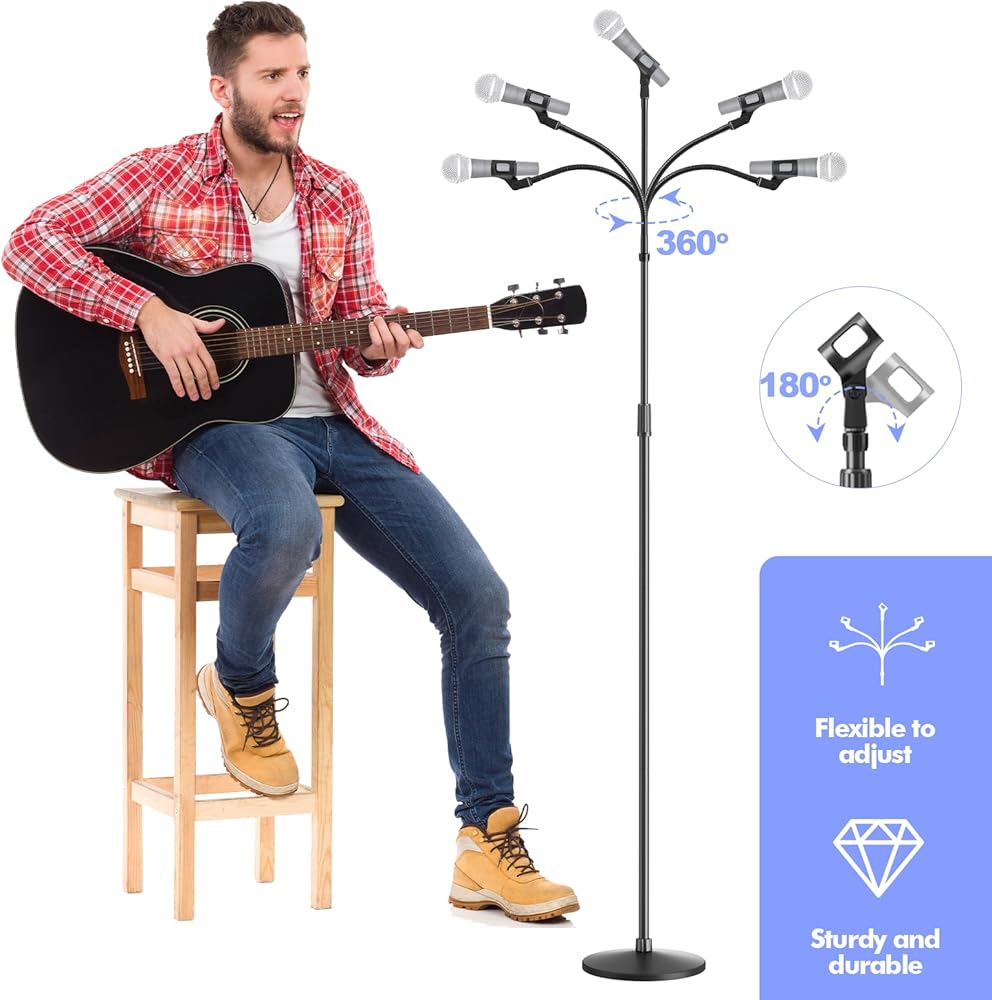 FLEXIBLE GOOSENECK: The microphone stand gooseneck swivels 360° for flexible use in singing, stage performances, studio meetings, road shows, concerts, and outdoor events. It can be positioned at any angle you need, providing unmatched convenience and versatility. Meanwhile, the mic stand gooseneck is high quality enough to support your microphone. The included microphone clip rotates 180° to provide you with easy angle adjustment.