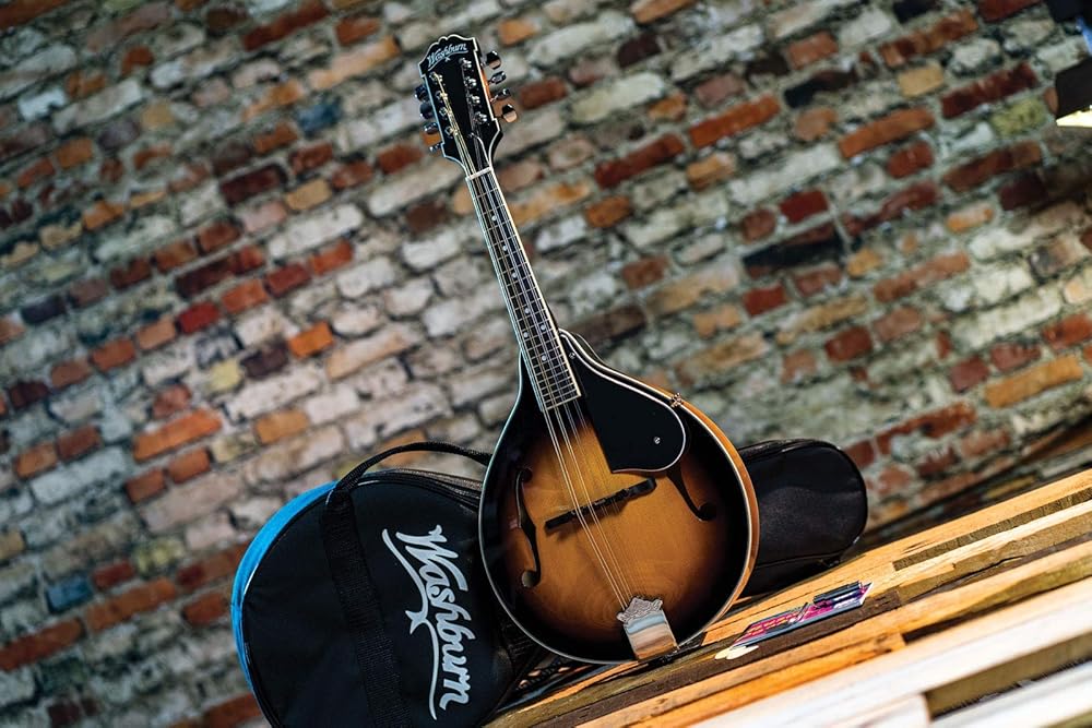 Washburn mandolin pack with A-style mandolin, gig bag, pitch Pipe, strap, picks, & booklet. Washburn has been building mandolins since the late 1800S. Whether you're a bluegrass, Celtic or rock player, see how the addition of a Mandolin can broaden your sonic pallet and add a new dimension to your music. For traditionalists, you'll find all the tone & projection you'd expect from our world class instruments.