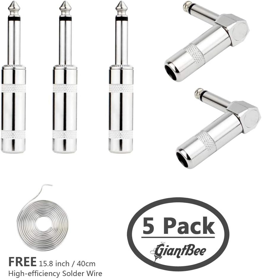1/4" Audio Plugs 6.35mm Plug TS Male 1/4 inch Solder Type Mono Plug Design Connector for DJ Mixer Speaker Guitar Cables Phono Patch Cable Microphone Cables (5 Pack) GiantBee (Combo Set)