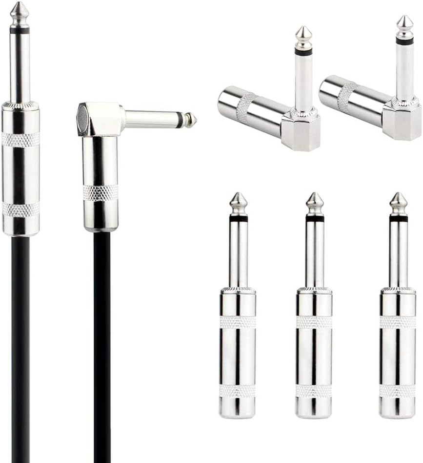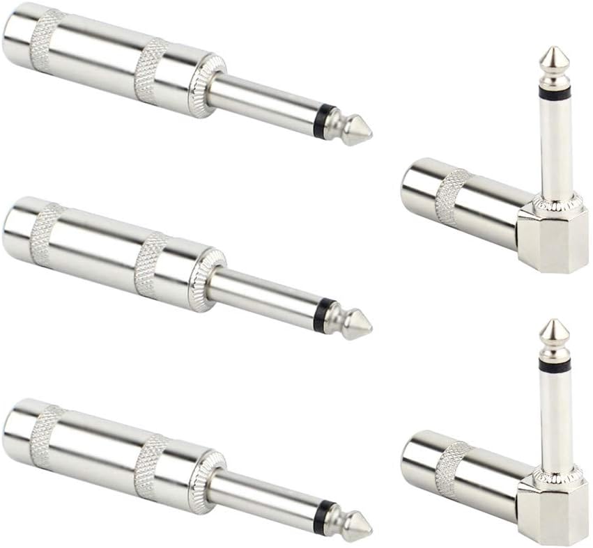 1/4" Audio Plugs 6.35mm Plug TS Male 1/4 inch Solder Type Mono Plug Straight Design Connector for DJ Mixer Speaker Cables Guitar Cables Phono Patch Cable Microphone Cables (5 Pack) GiantBee
