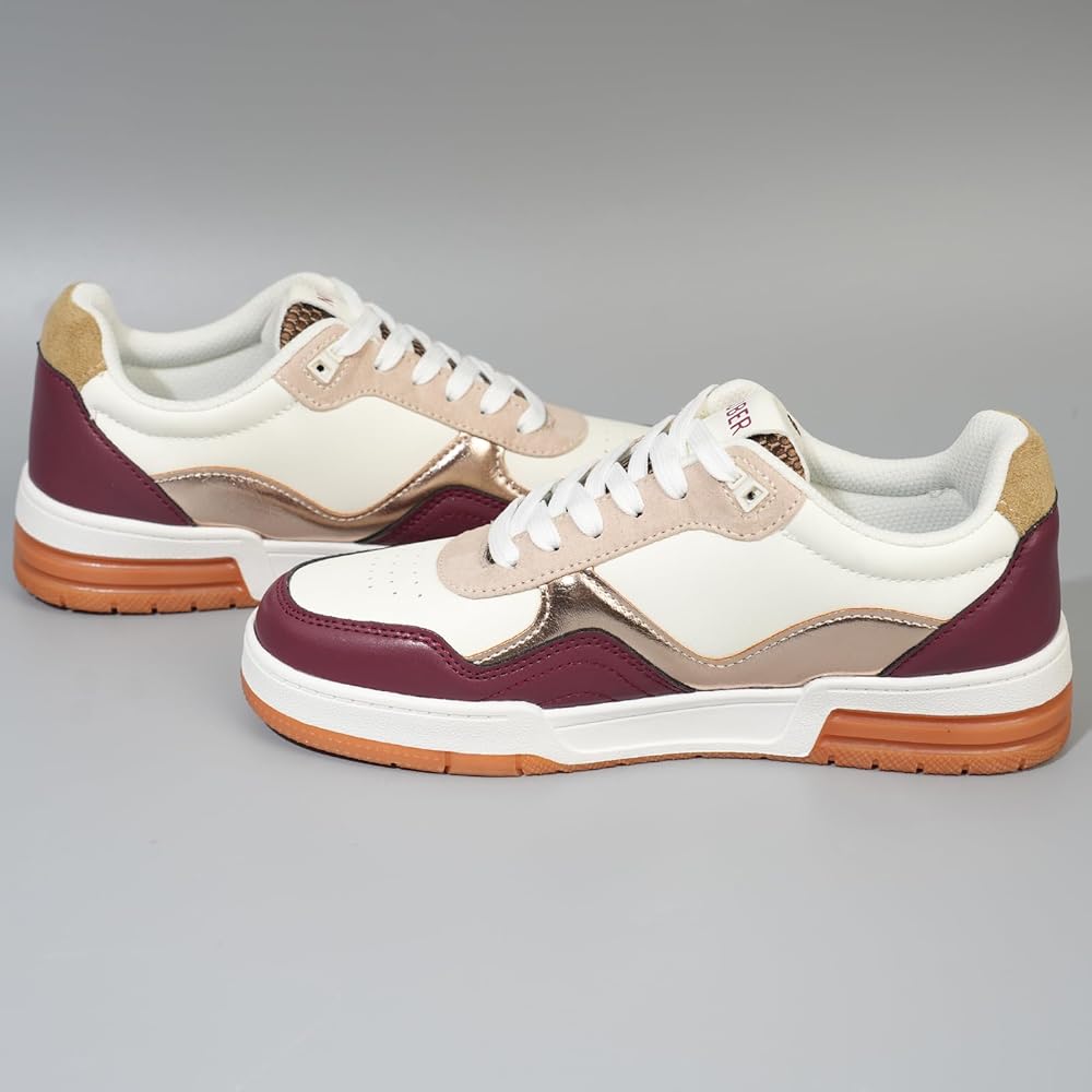 LACE-UP DESIGN - Customize your comfort with these Women's Fashion Sneakers. Featuring a classic lace-up closure, these White Leather Low Top Tennis Shoes allow you to adjust the fit to your personal preference, ensuring maximum comfort throughout the day.