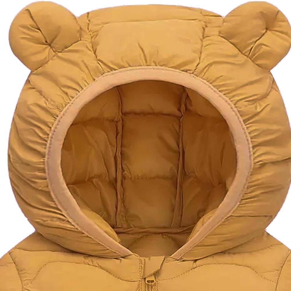 Adorable Hooded Bear Ears: Featuring two cute little bear ears on the hood, this coat not only keeps your baby's head warm but also gives them a cuddly bear look, perfect for playful winter days.