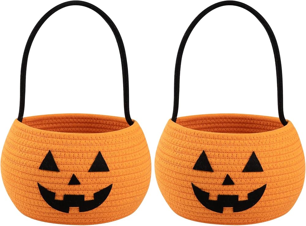 Soft Pumpkin Basket: The Halloween basket is made of 100% cotton rope with a soft touch, Rest easy knowing that this pumpkin bucket is not only adorable but also built to last