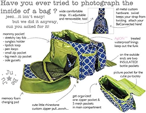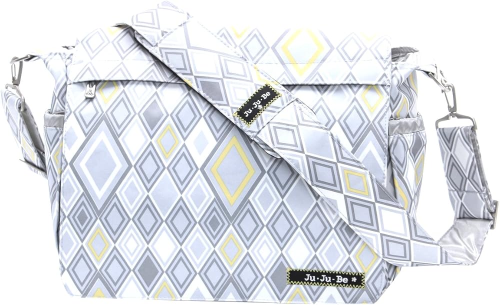 The Ju-Ju-Be 12MM01ASII Better Be Messenger Style Diaper Bag is smart bag that has an innovative design and a number of pockets for extra versatility. Is your diaper bag machine washable? It BETTER BE! Is your diaper bag lined with light colored, antimicrobial linings? It BETTER BE! This messenger style diaper bag is perfect for any mom or dad on-the-go! The outer fabric is treated with Teflon fabric protector, making it easy to repeal stains and keep your better be bag clean. The front "mommy" zippered pocket is large enough to hold smartphones, wallets, keys and other personal items. Inside are (2) smaller zippered pockets with a sunglass case, lipstick loop and key fob stretch cord. The main pocket is large enough for a supply of diapers, wipes, soft toys, extra clothes and other items for a quick trip away from the house. Located on the external flap is a zippered pocket, perfect for storing a few additional diapers. The back pocket is designed with crumb drains to keep the better be clean and includes a super cushy memory foam changing pad. "Bottle" pockets are located on either side of the bag and insulated by 3m Thinsulate to keep all your items hot or cold. The Silver Ice design is a silver and light blue fabric that's lined in a light blue trim, detailed with metal hardware and an adjustable memory foam shoulder strap with textured fabric underneath to prevent the bag from sliding off your shoulder. This bag is machine washable and measures 14-inches by 11-inches by 2-inches in size. The Ju-Ju-Be 12MM01ASII Better Be Messenger Style Diaper Bag comes with a 90-day limited warranty that protects against manufacturing defects.
