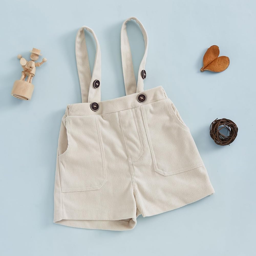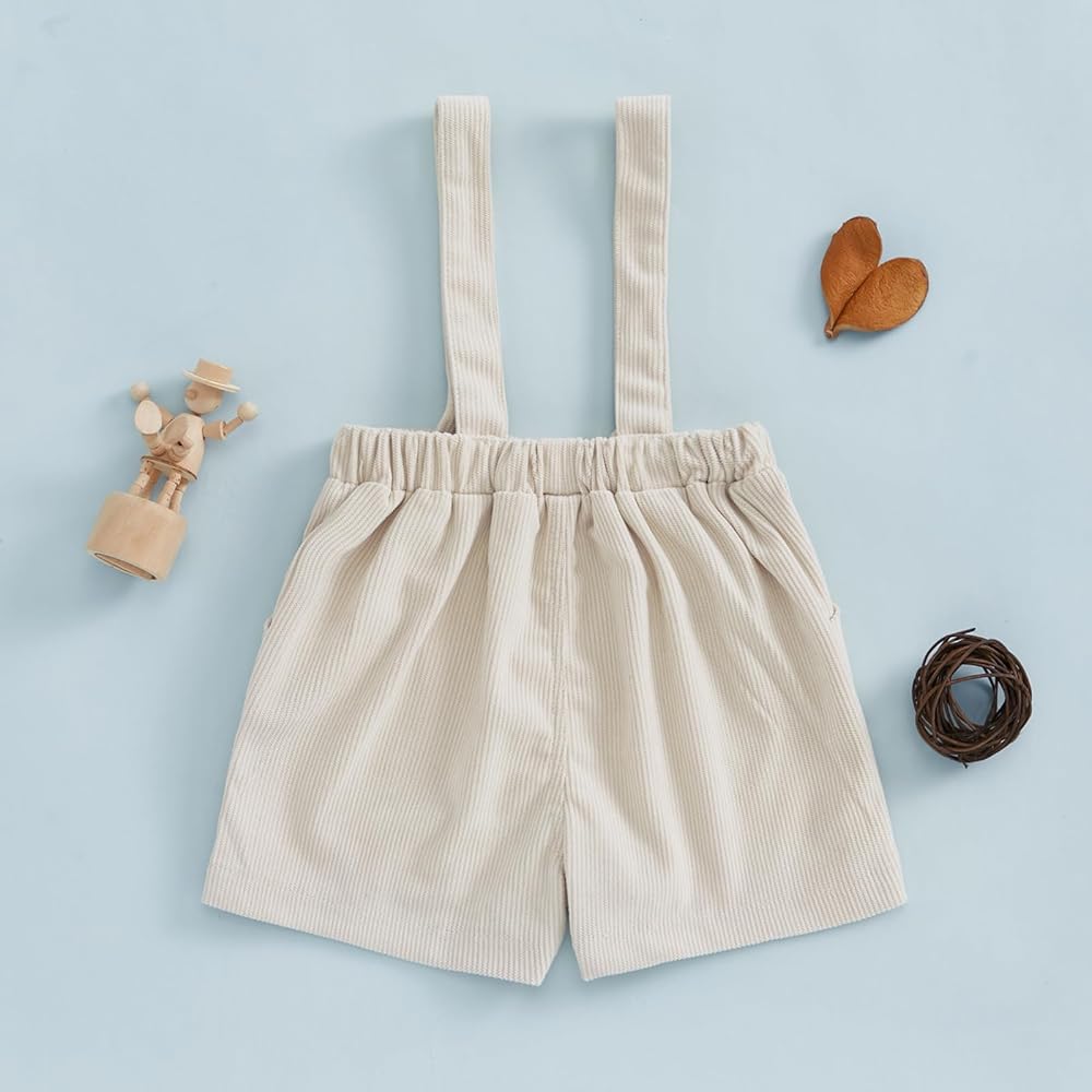 Little Boy Girl Suspender Shorts Solid Color Sleeveless Corduroy Shorts Overalls for Summer Spring Fall