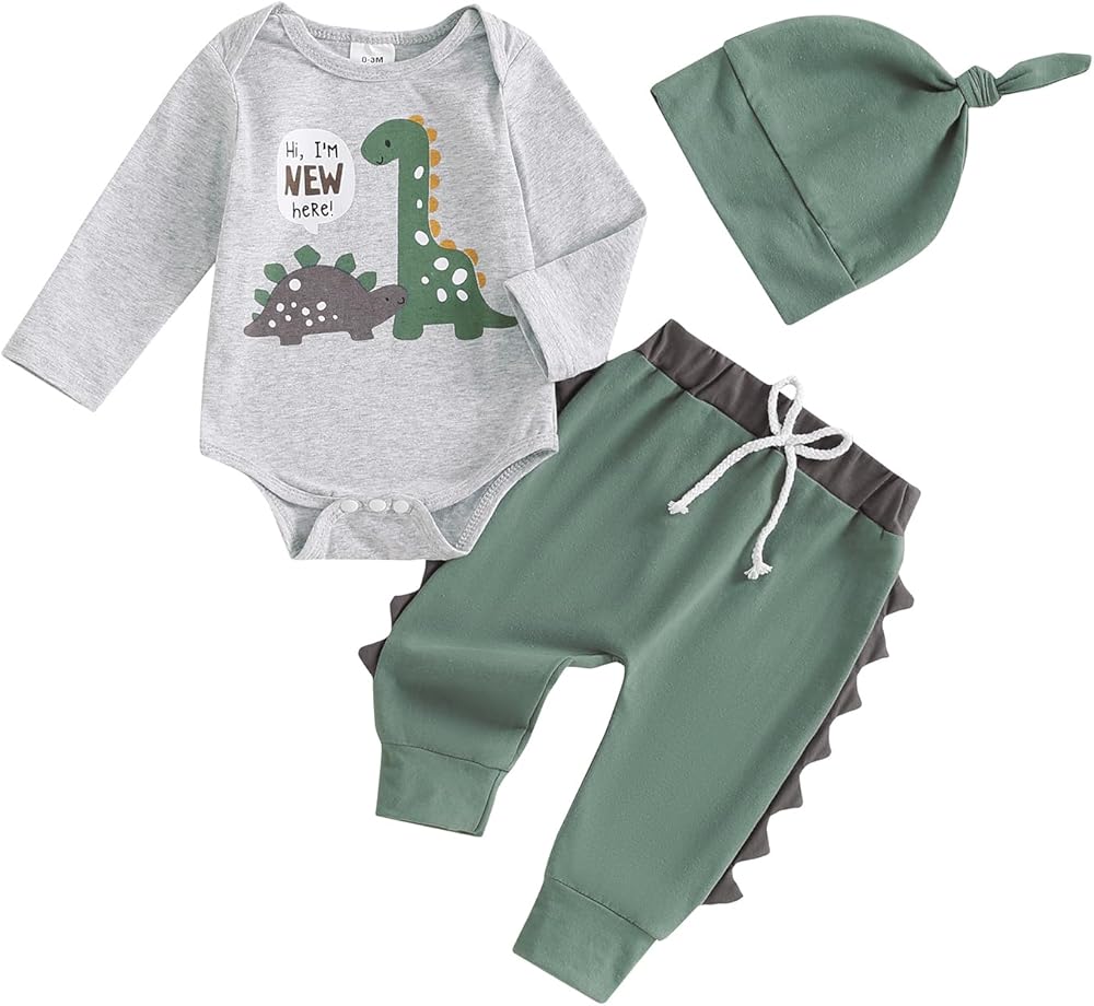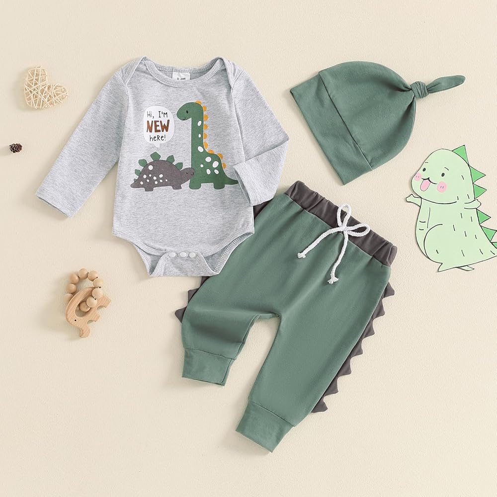 GIFT--- Baby first outfit hospital for boy, baby boy coming home outfit fall, newborn coming home from hospital outfit .3pcs fall outfits for your little prince boy. A great gift for birthday, festivals, holiday, vacation or daily surprise. Super soft & fashion clothes for boys.Dinosaur cartoon printed.