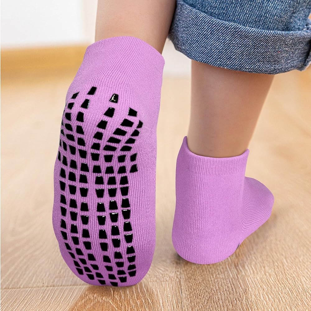 These cushioned anti slip baby toddler kids socks are designed with grips at the bottom, your children can learn walking, run and play without slipping.
