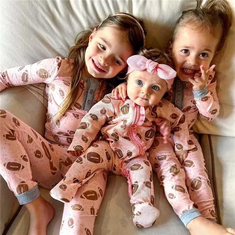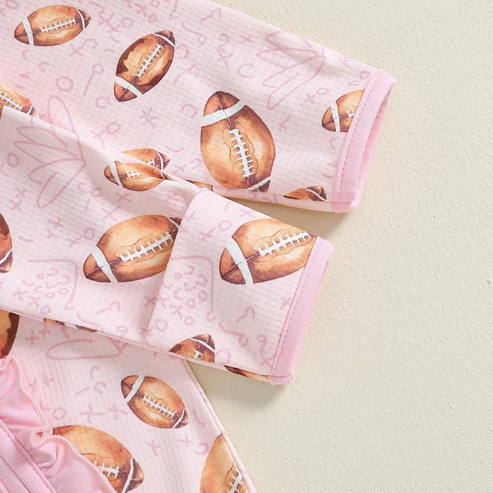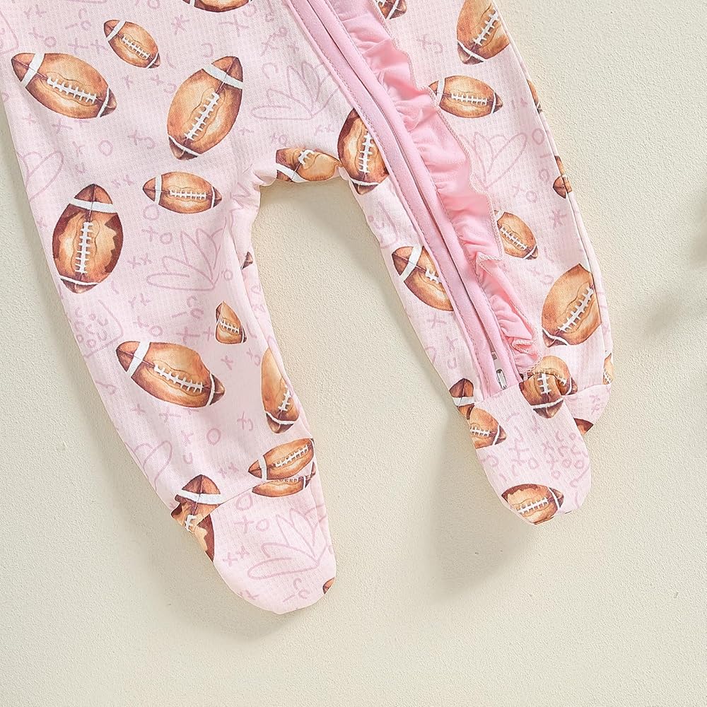 【Material】Baby girl football onesie,crafted from soft and breathable 100%Polyester fabric,,baby girl football outfit,snuggle your little one in this adorable and cozy footed footie set.