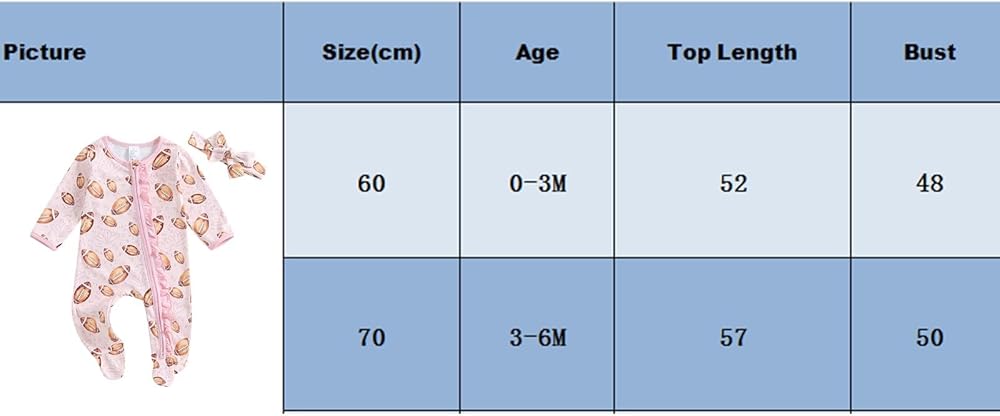 【Size】Baby football outfit girl,fit for newborn baby girl fall winter outfit,baby girl coming home outfit,family gathering game day outfit 0-3months football jumpsuit playsuit one piece bodysuit,3-6months baby girl footed romper onesie ,available in a range of sizes to accommodate your growing baby.