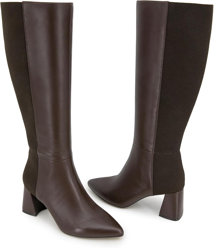 Gentle Souls Dionne 5050 boot. Tall shaft heeled boot with pointed toe and leather/textile upper.