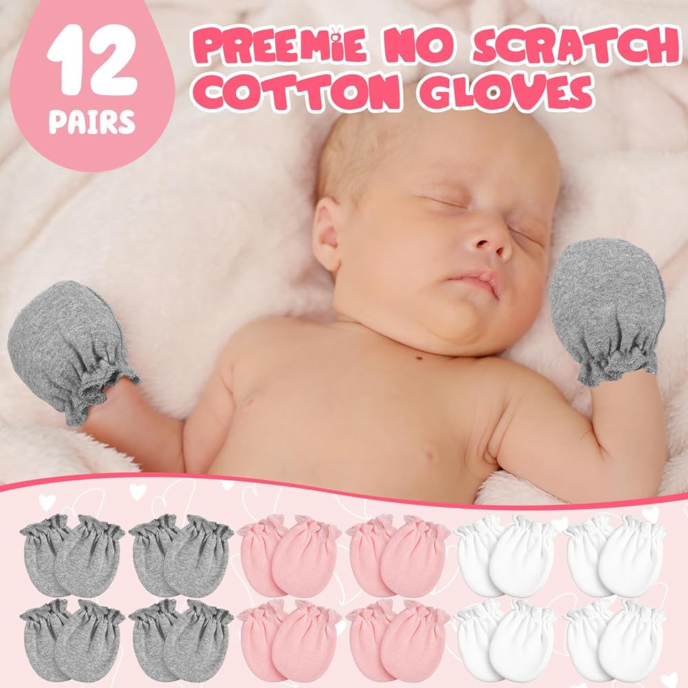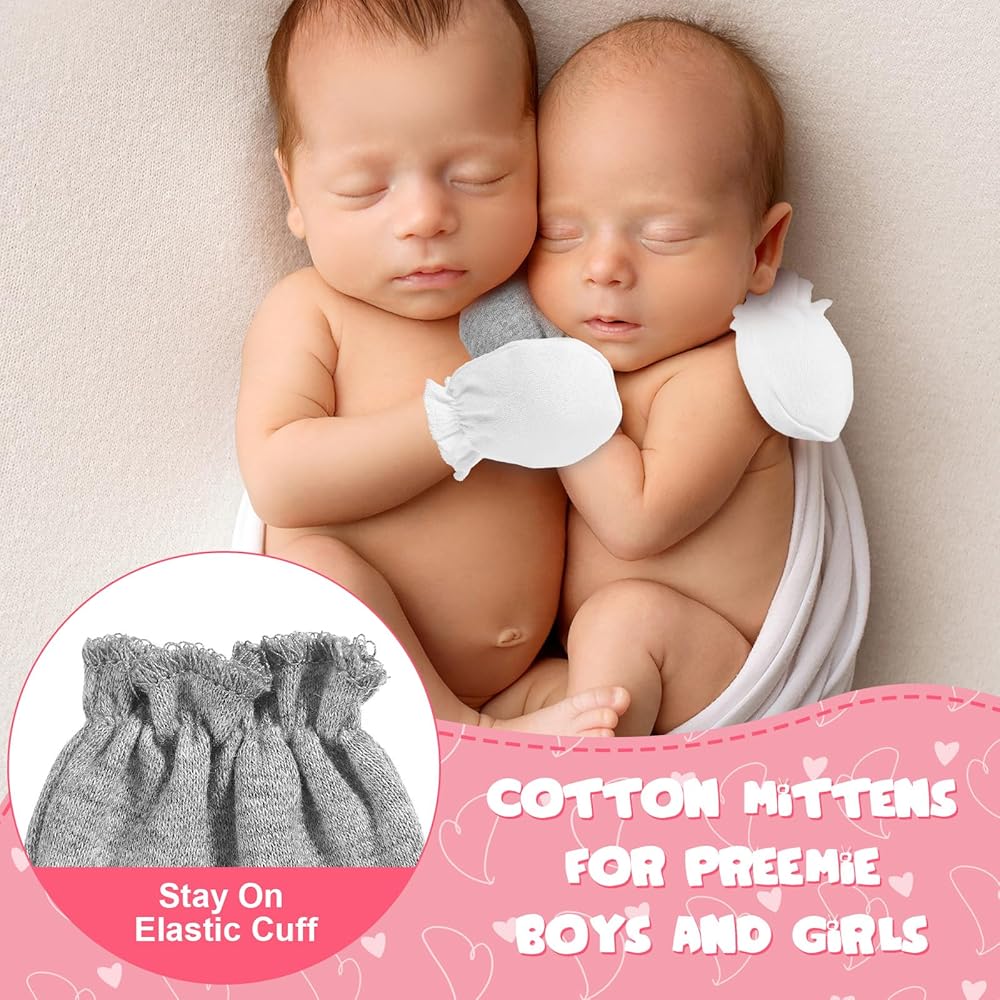 Sufficient Quantity: you will receive 12 pairs of pure white no scratch cotton preemie mittens, sufficient quantity, fits most premature boys and girls, enough to meet the needs of premature families and premature babies for use, replacement, sharing