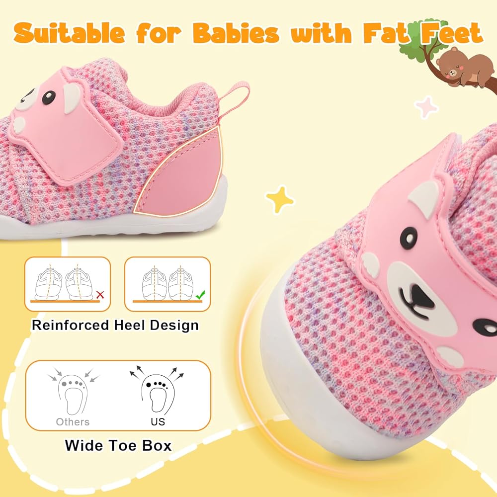 【Wide Toe Box】Unique wide toe wrap design, allows baby to move freely while maintaining body balance and protecting the baby's feet from harm.