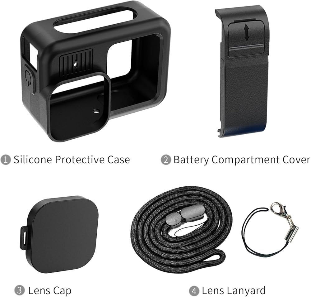 What's Included: 1x Silicone cover for Go Pro Hero 13, 1x Silicone Lens Caps,1x Battery Side Door. Important Note: The replacement side door is not waterproof and should not be submerged in water.