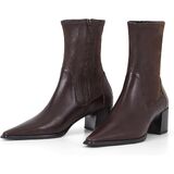 Giselle is the contemporary stretch boots for everyday wear. Crafted in dark brown leather and synthetic leather, the style features a stretchy shaft, pointed-toe shape and zip-side fastening. The sleek heel measures 57mm.