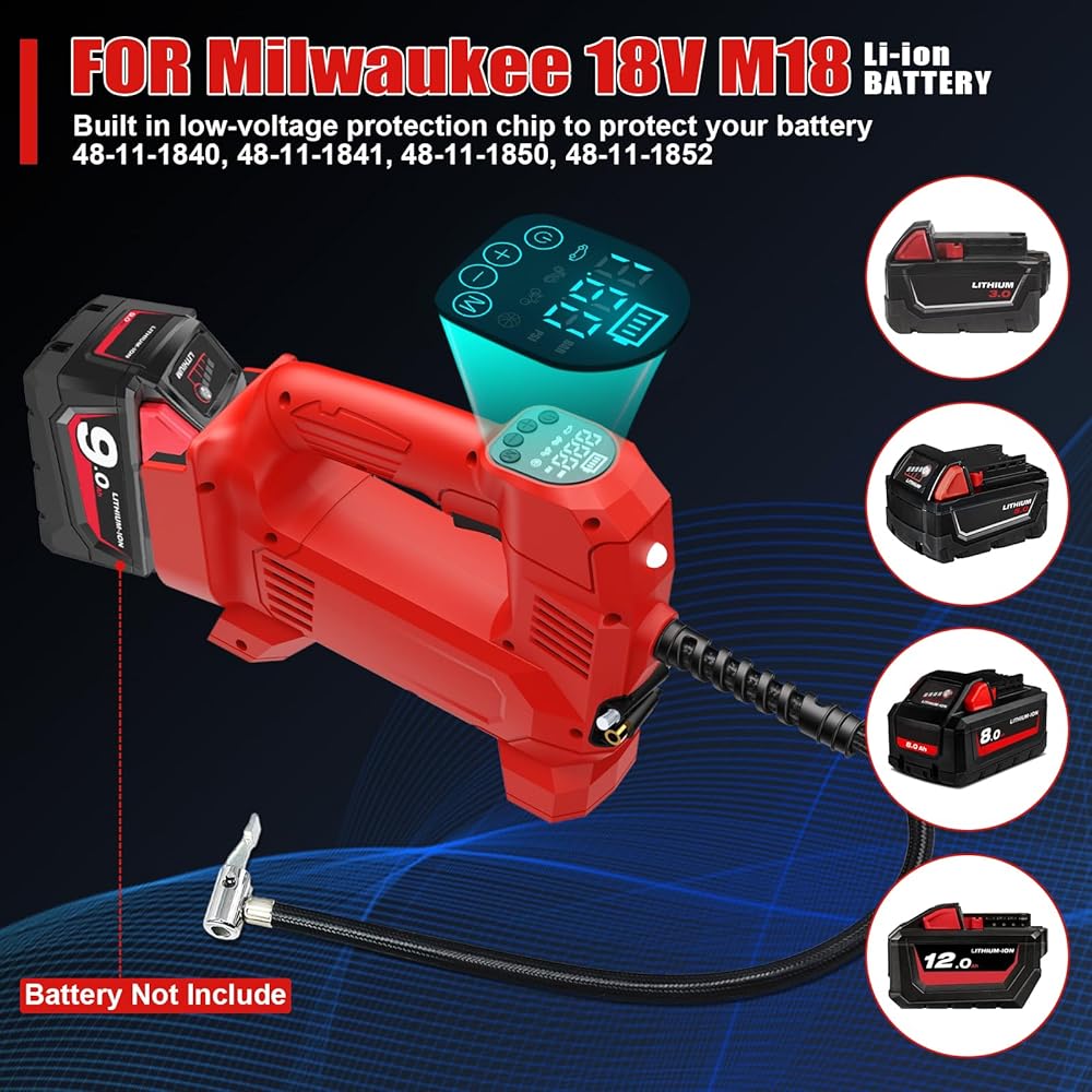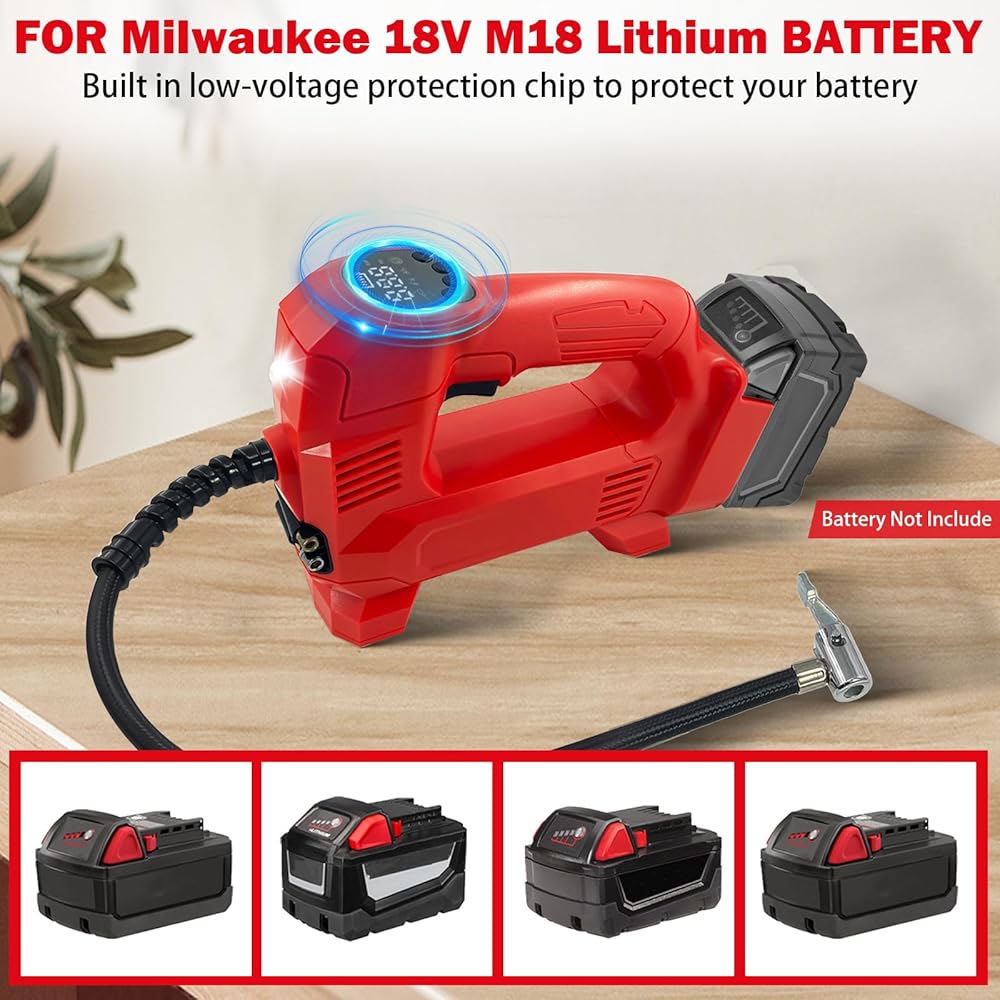 Tire Inflator Air Compressor Compatible with Milwaukee 18V M18 Battery Power,150PSI Cordless Portable Electric Air Pump with Digital Pressure Gauge for Car Motorcycles Bike Sport Ball Auto(no battery)