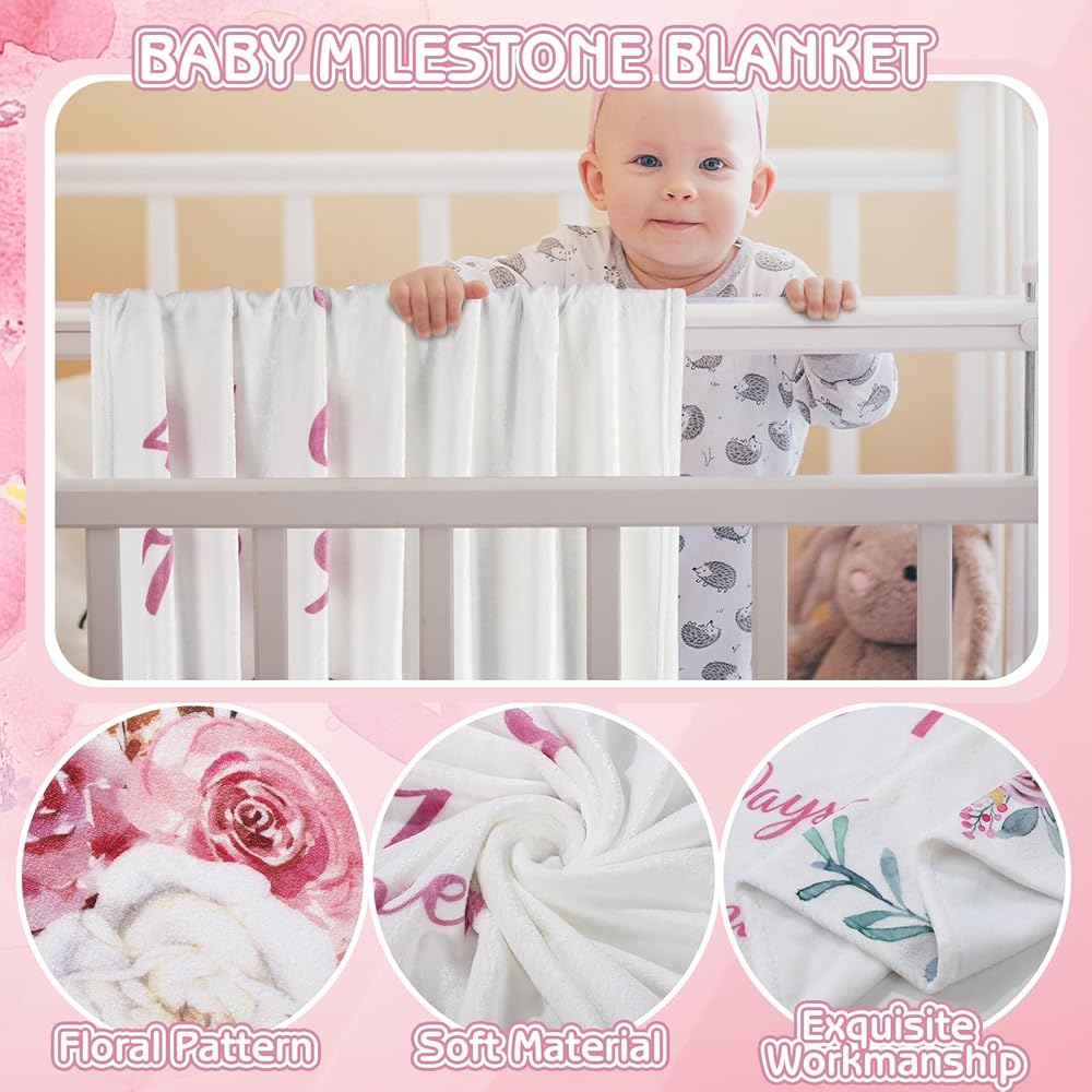 【Practical Gift】This newborn monthly milestone blanket designed with flowers, that suitable to capture beautiful moments, add a touch of cuteness and playfulness to photo, it is a good and useful gift for new parents.