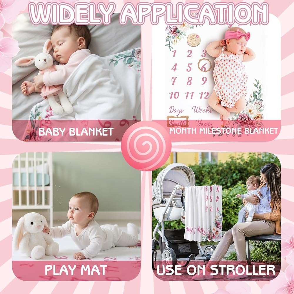 【Wide Use】Our baby monthly milestone blanket suitable for many occasion, such as baby girl nursery decor, baby blanket, photo backdrop, baby play mat, baby sleep blanket, baby souvenir, etc.