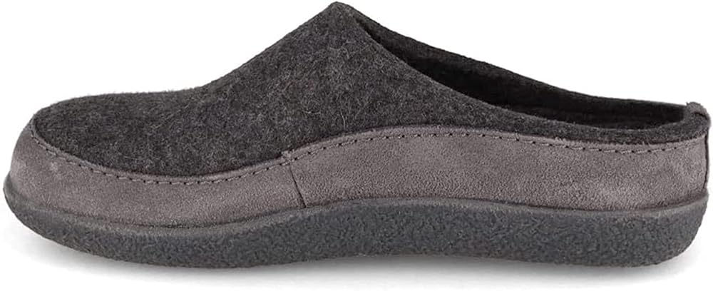 HAFLINGER Womens Skane Clogs Natural felt, processed from pure new wool, is not only warm, but breathable. So it can be worn for longer periods at a time without causing sweaty feet. Excess heat and moisture is quickly transported away to the outside air. The included footbed ensures pleasantly cushioned steps. If necessary, it can be easily removed by hand and replaced with your own insoles. The large, extremely robust shell sole made of natural rubber can also be used without hesitation for trips to the garden. It also has a slip-resistant profile to provide stability. This version carries the name of the Swedish southern county named 'Skane'. The ultimate crossbreed of an indoor slipper and an outdoor clog. Very comfortably cut.