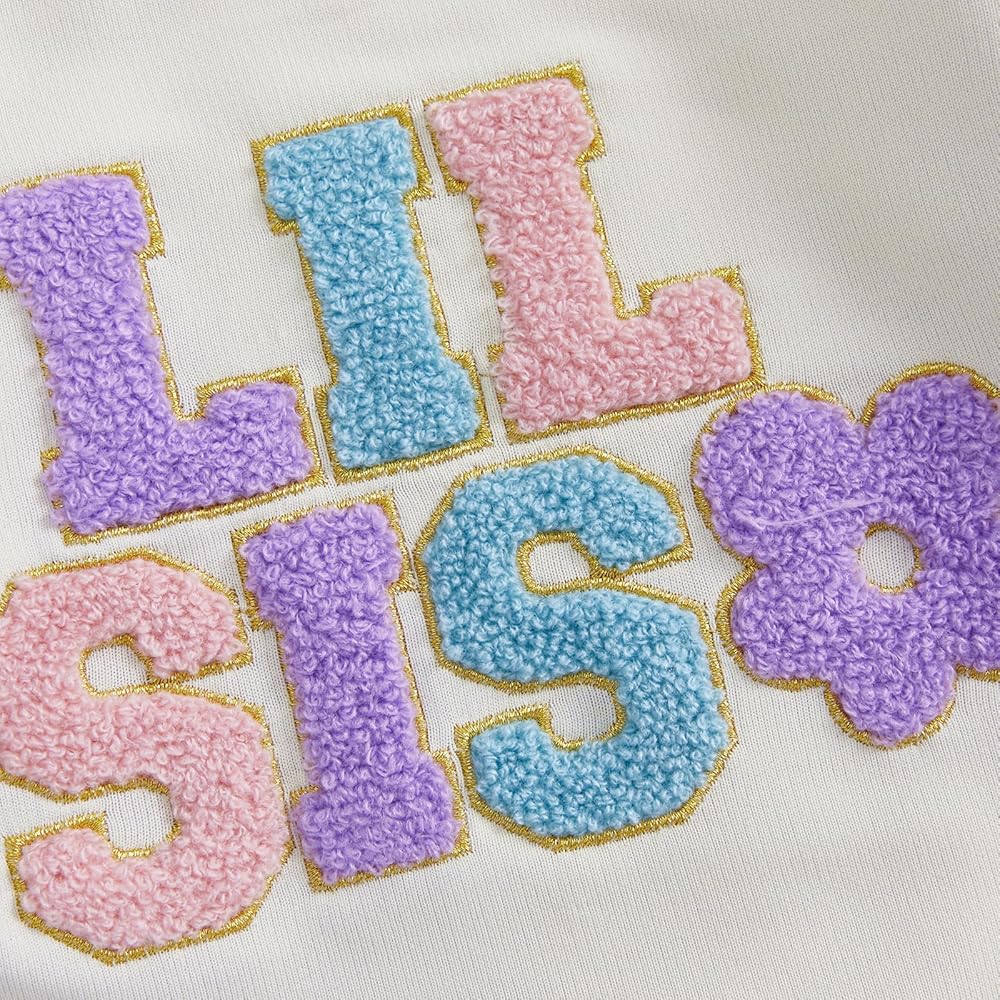 Design:Baby girl fall outfits,baby girl winter clothes,big sister outfit,little sister outfit,toddler girl sweatshirt,little girl clothes,toddler girl skirt,baby girl skirt set,baby girl tutu skirt,long sleeves, round neck, ''Big sis''''Lil sis''embroidered letter patterns, and a sheer skirt with floral patterns on the elastic waist. The toddler baby girl outfit makes your girl look like a radiant angel