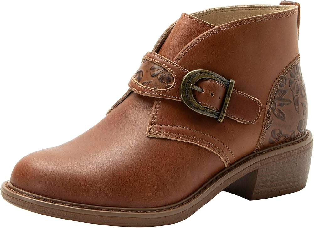 TIMELESS STYLING. Whether for work or casual outings, these ankle boots effortlessly combine style and practicality, enhancing any wardrobe with timeless elegance. The timeless western-inspired buckle detailing adds a subtle hint of rugged elegance to your wardrobe, making these boots a versatile choice for various occasions.