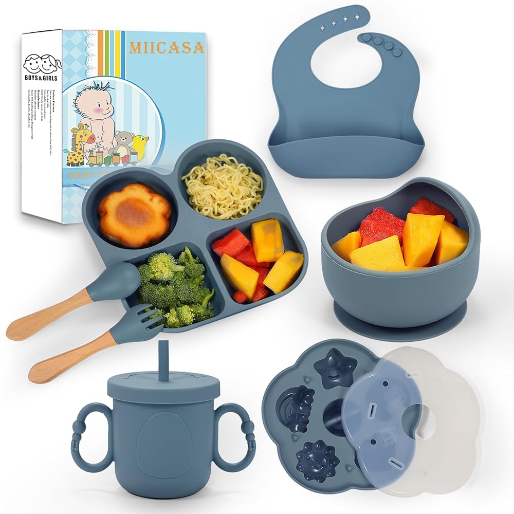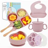 A Durable Dining Set: Silicone baby led weaning set is hard to stain or damage and won't hurt a teething toddler's gums. It's also soft, sturdy, flexible, and without sharp edges. The baby feeding set includes everything you need for baby feeding