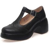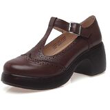 Combination of retro fashion and modern flair- platform leather oxford style, features wingtip perforation and a t strap with an adjustable buckle
