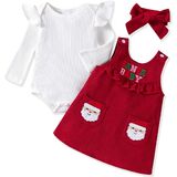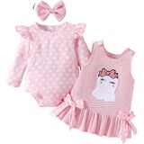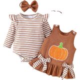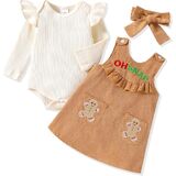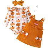 PACKAGE-- 1 x long-sleeved Romper top + 1 x Halloween Suspender Skirt + 1 x Headband. Complete your little one's Halloween look with this cute and stylish outfit.