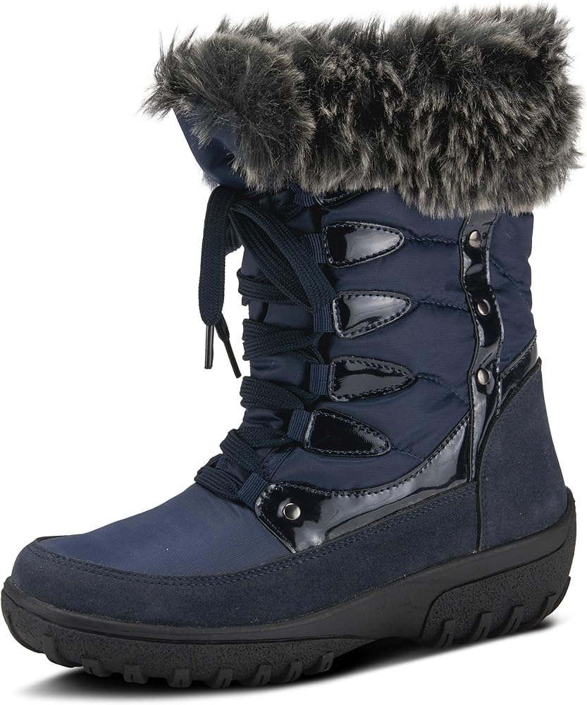 𝐀𝐃𝐉𝐔𝐒𝐓𝐀𝐁𝐋𝐄 𝐋𝐀𝐂𝐄 & 𝐙𝐈𝐏𝐏𝐄𝐑: These womens boots feature a beautiful faux fur collar, a zipper closure, and adjustable laces. Our snow boots are simple to put on and take off due to the zipper and lace design, which allows for quick and easy shoe changes to relieve tired feet.