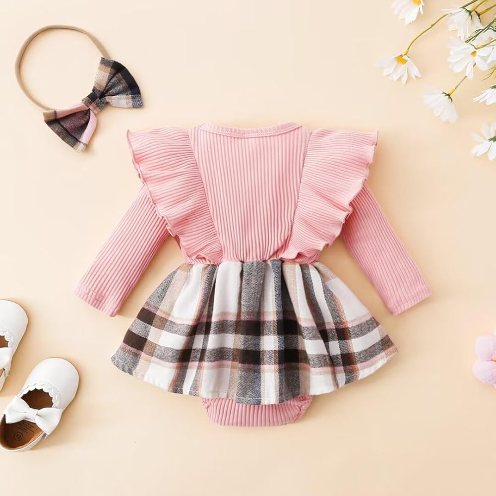 Adorable and Fashionable Design: Our fall baby girl clothes has elegant ruffles on the shoulder, super cute bow on the waist, beautiful skirt hem with plaid patchwork, and sturdy bottom snap. Extra bow headband will make your baby girl look like a princess and get lots of compliments. Your sweet heart will definitely love it.