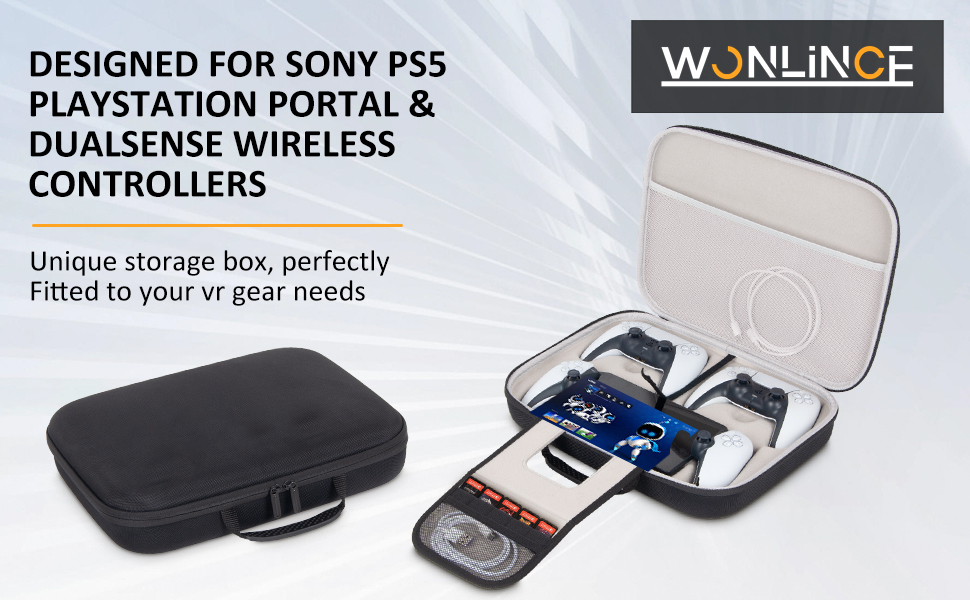CUSTOM-DESIGNED CARRYING CASE for PlayStation5 Portal Remote Player + 2 Sony DualSense Wireless Controller,The coolest protection for your PS5 Portal Remote Player! (NOTE: PlayStation5 Portal Remote Player and other accessories not included)