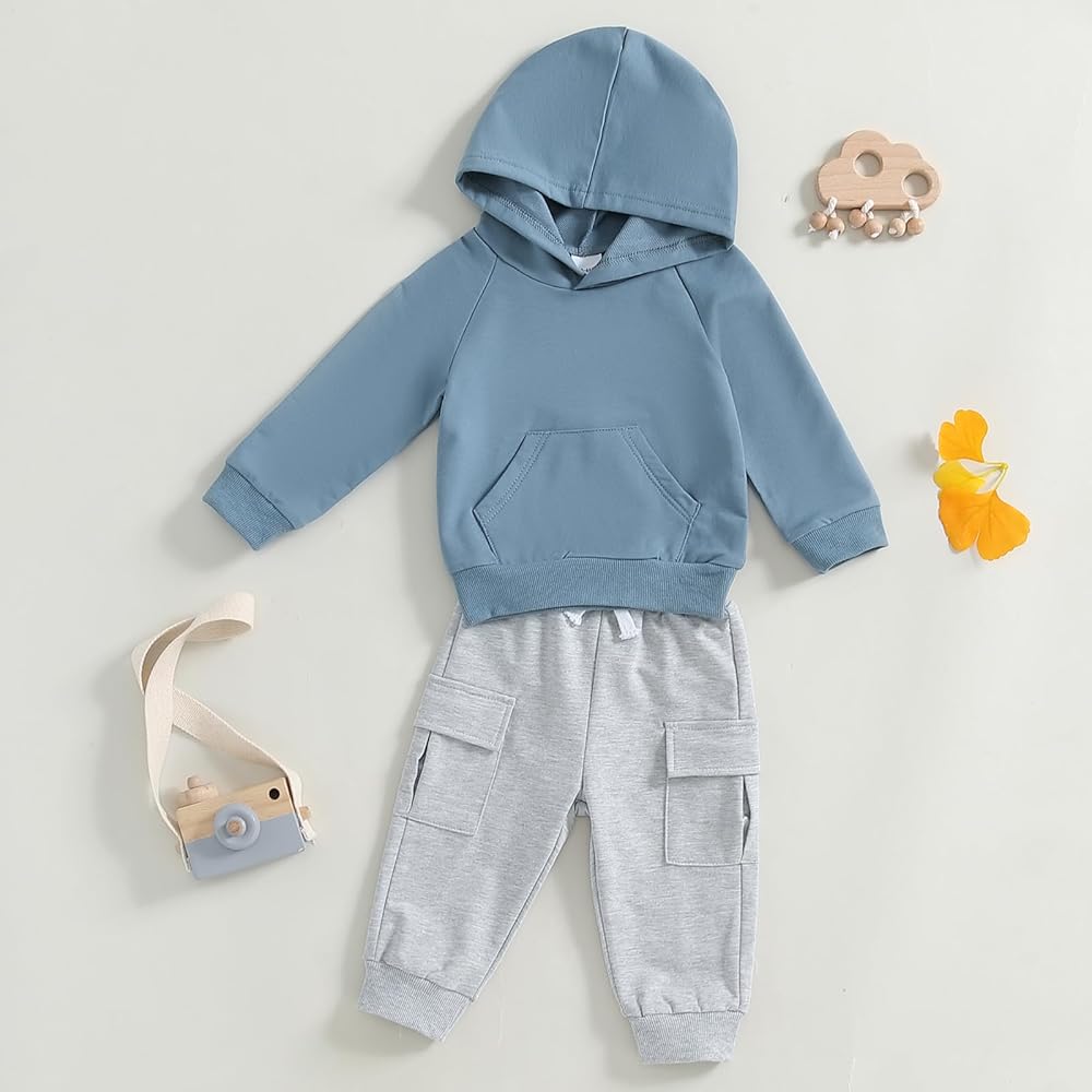 DESIGNS: Baby boy clothes, long sleeve hoodies, solid color, front with a kangaroo pocket, hooded sweatshirts, matching with elastic waist long pants, bright colors make the baby look cute and lovely.
