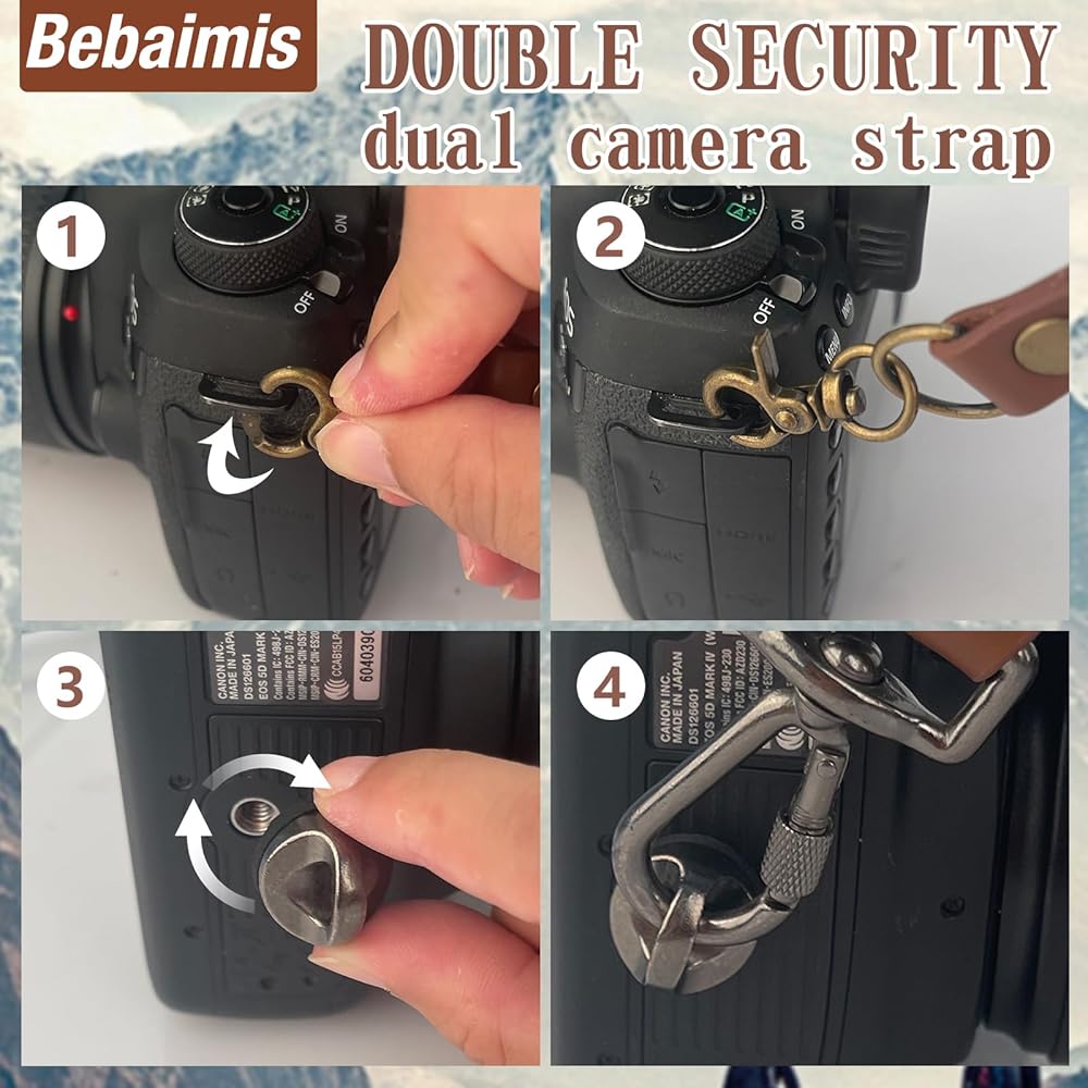 DOUBLE SECURITY CAMERA SHOULDER STRAP— Bebaimis camera strap uses one hook and one screw to ensure the safety of your camera, so that your camera will be safe even during the most active work