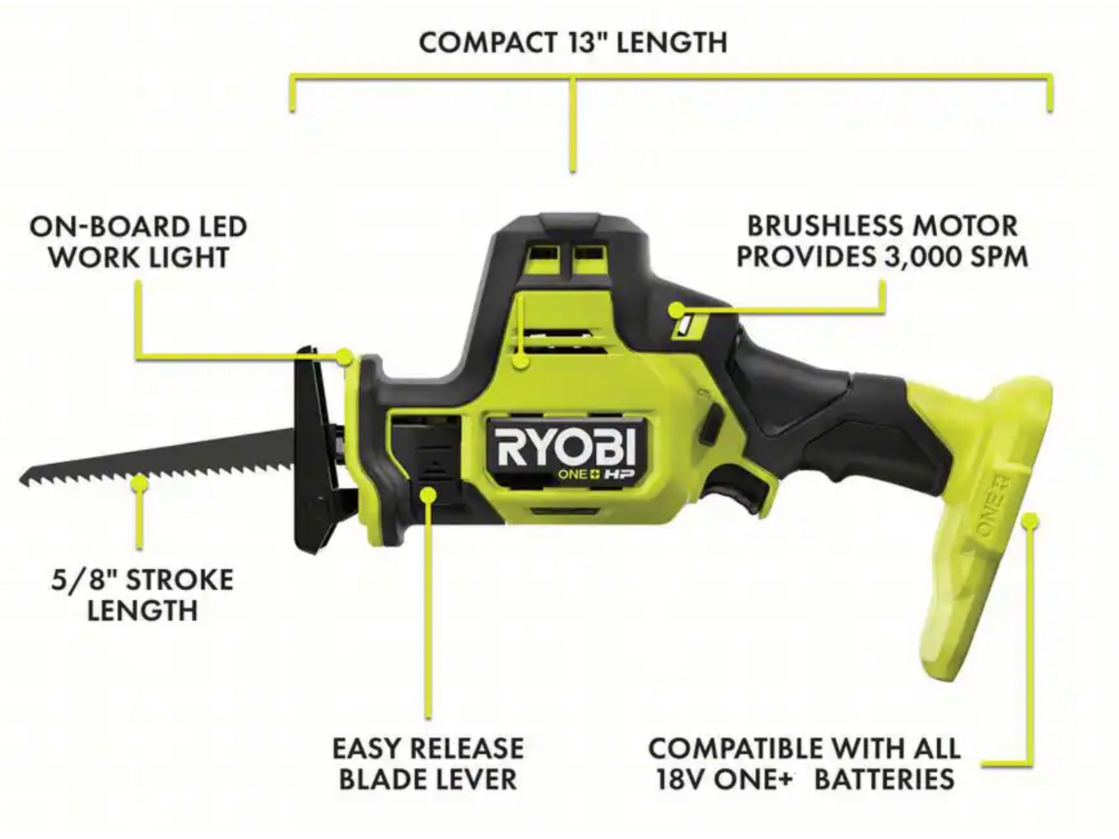 Compact Power: 18V Reciprocating Saw is 31% smaller, 24% lighter. Ideal for tight spaces, 3,000 SPM for powerful cutting.