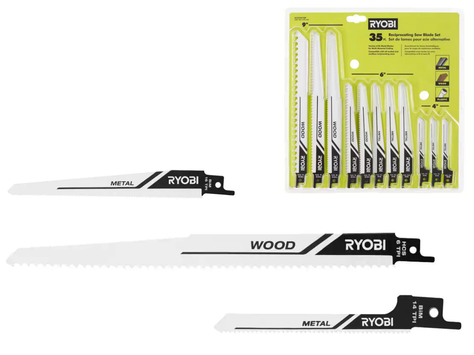 Buho One Handed Reciprocating Saw Accessory Bundle - Ryobi 18V Brushless Cordless Compact One Handed Reciprocating Saw, Multi-Purpose Reciprocating Saw Blade Set 35-Piece Tool Bag Battery Not Included