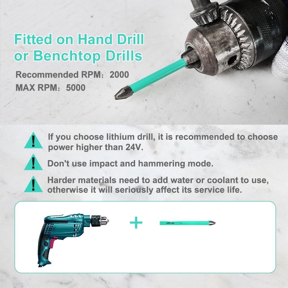 【RECOMMENDED MACHINE】Suitable for Hand Drill or Bench Drill. Recommended RPM: 2000-5000. The faster the speed, the longer the service life. Do not use impact mode.