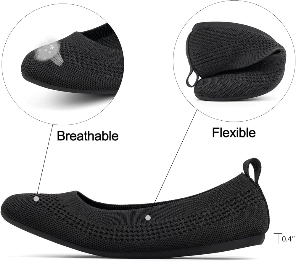 Comfortable: Crafted with a soft and flexible knit upper, these women's ballet flat shoes offer a snug and breathable fit that molds to the foot for optimal comfort. The soft cushioned insole with arch support provides you all day standing or walking comfort, like walking on clouds.