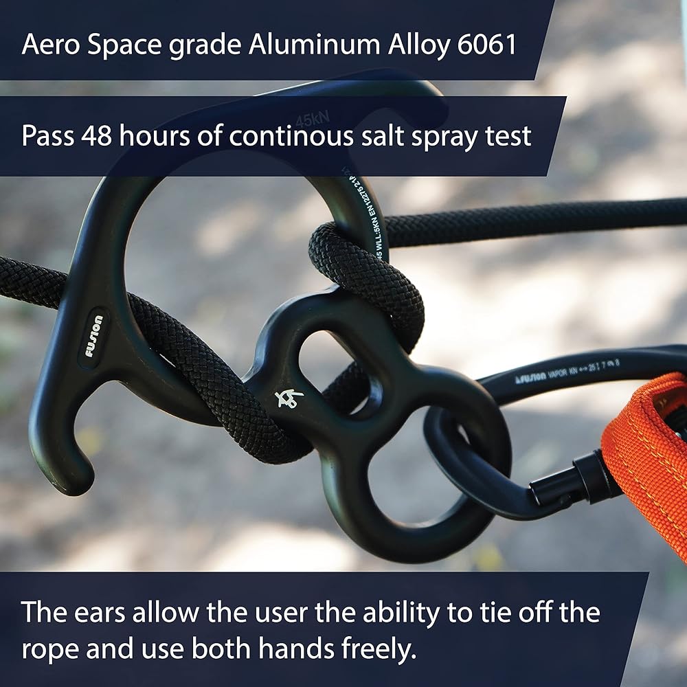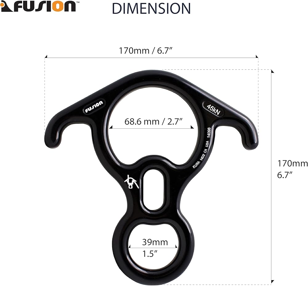 Material: This Fusion Climb FP-8145 Kura 8 descender is made of a lightweight yet high strength aluminum, finished with an anodized process. The Anodizing finish increases the resistance to corrosion and wear, making for an exceptionally durable finish.