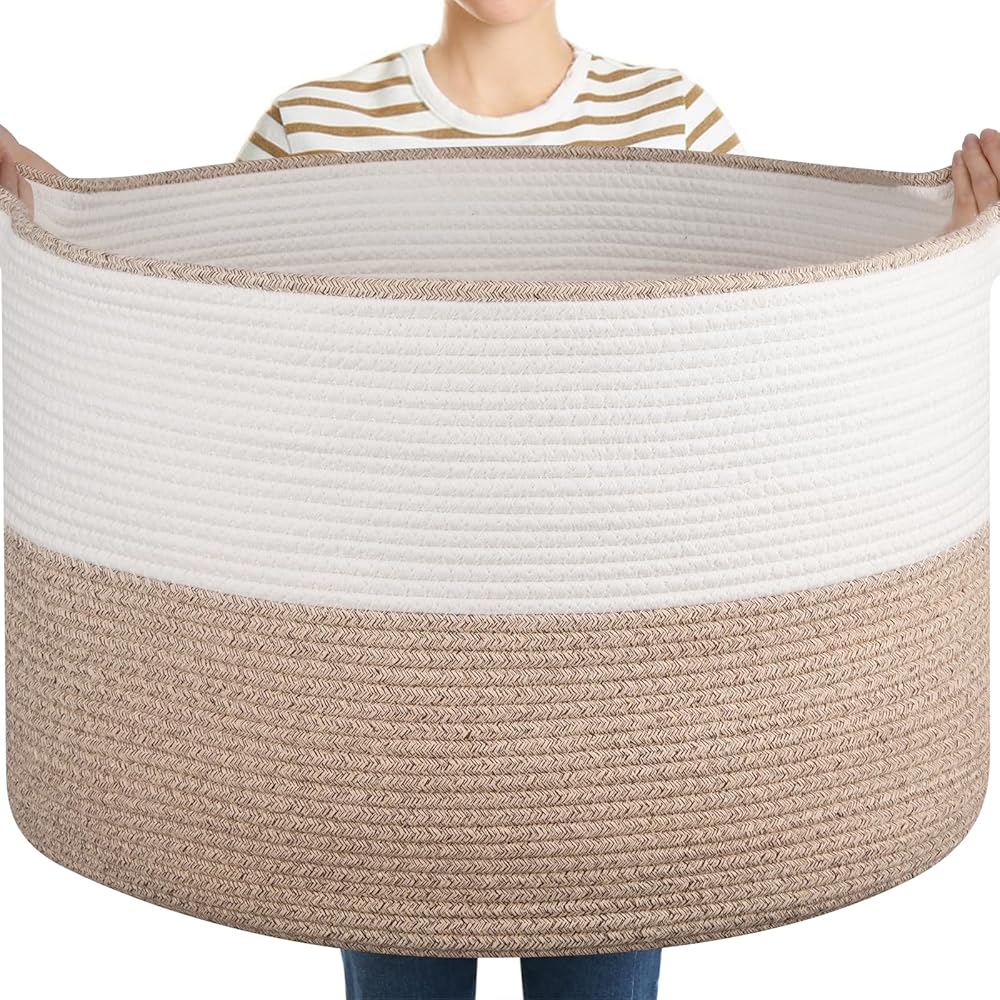 Extra Large Basket: 22.8" x 22.8" x 13" basket for blankets, which is perfect for throw pillows, blankets, stuffed animals, toys, clothes and much more. It can also be used as a laundry basket in guest room, offering flexible storage options for any room